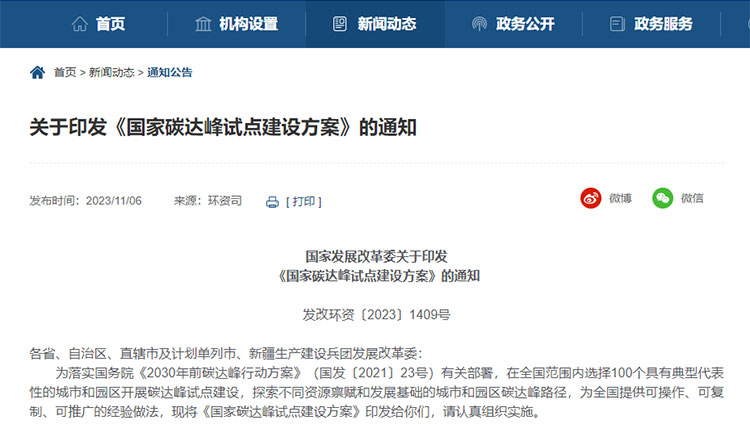 近日,國家發展改革委近日印發《國家碳達峰試點建設方案》(以下簡稱“方案”), 將在全國范圍內選擇100個具有典型代表性的.....